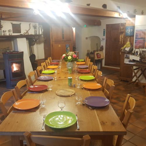 Aménagé dans deux anciennes fermes de montagne, le gîte en a conservé le charme des murs épais, des anciennes étables voûtées et des toits pentus couverts de tuiles en écaille.